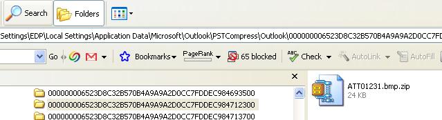 If you're like me and a heavy user of Microsoft Outlook, you sometimes get frustrated over how long it takes Outlook to do something: load at startup, find a message, sort your list, ... You would think after all these years, they could get the product to work smoothly and quickly. Even worse, in 2003 (the version that I am currently using), there's a 2Gigabyte limit to the size of any Outlook data file (they're called PST or PoST office files), beyond which you can encounter corruption and loss of data. [Editors Note: And I'm certainly not moving to Outlook 2007 anytime soon -- my clients have had horrible experiences with that and with Vista as well -- I recommend you stick with Outlook 2003 and Windows XP. I'm currently evaluation Mozilla's Thunderbird as a possible replacement for Outlook...] I was approaching that 2Gig limit and things were running very slowly, so I cast around for a way to compress the files. I quickly came across PSTCompress, a utility which could do this automatically and on schedule for a number of different Outlook PST files. It was the only such utility that I could find, so I figured I'd give it a whirl: they have a trial version which can work on a single PST file. What I found very interesting is that they also have options to compress any attachments (converting them to zip file during the compression) and/or extracting them to external files stored under the Outlook folder where the PST file was stored. I chose the latter option and reduced a 1.8Gig PST file to about 200K -- and now Outlook really soared! I was very pleased initially but when I did my first search on my hard drive, my satisfaction quickly soured. What I learned was that each attachment is individually exported to a unique subdirectory for each email that contained an attachment! So I wound up with over 4500 new subdirectories, each with maybe 1-3 files in the subdirectory.